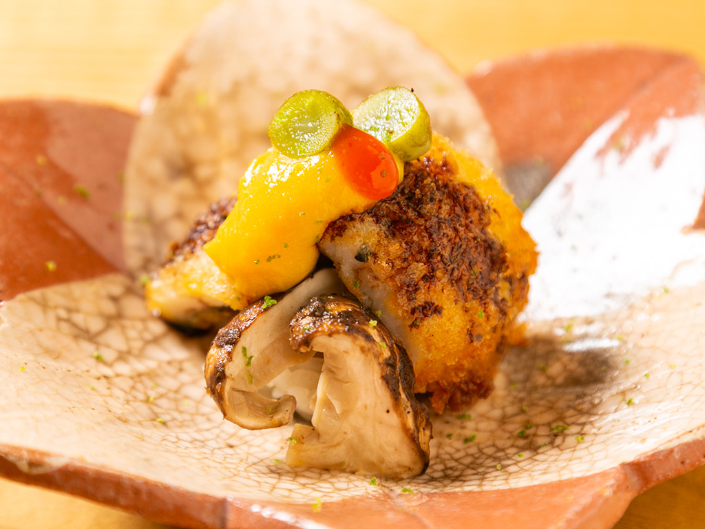 ・鱧カツ 松茸おこわ 銀杏 黄身酢